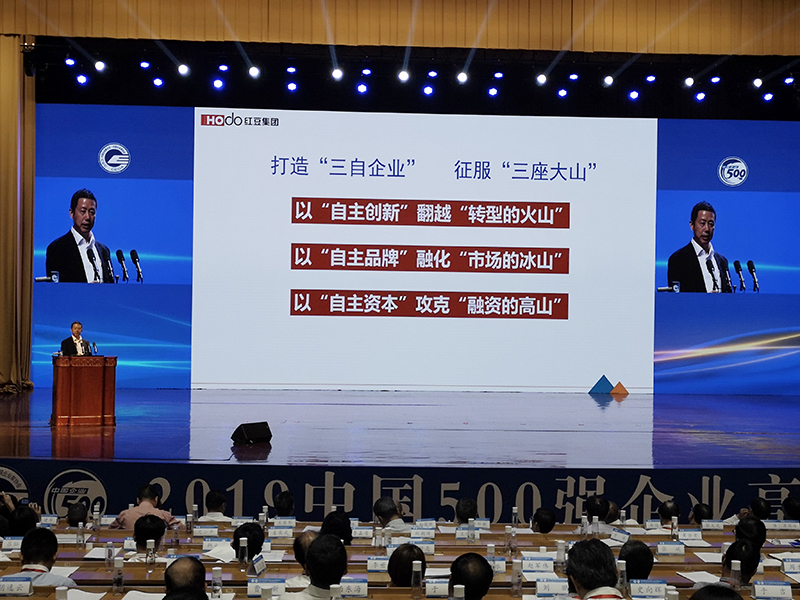 中国民间商会副会长、红豆集团董事局主席兼CEO周海江受邀担任本次大会联合主席,并在企业家主题论坛就中国企业如何“做好自己事 当好自己人”为题,从“打造三自企业,做好自己事”及“当好新时代自己人”两个方面出发,同与会者探讨在当前复杂多变的全球经济环境下,大企业的发展之道。 一方面要打造三自企业,做好自己事。周海江表示,企业当前亟需征服的“转型的火山、市场的冰山、融资的高山”这“三座大山”,既需要各级党和政府营造更好的发展环境,更需要广大企业自身能够主动应对、积极作为,做好自己的事,着力打造“三自企业”即“自主创新、自主品牌、自主资本”。