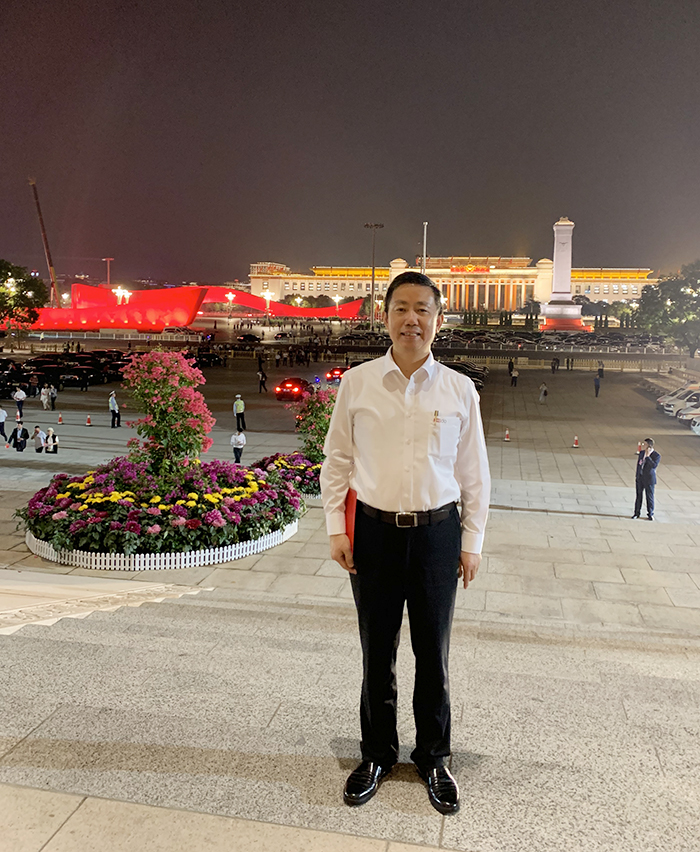 周海江介绍说,在新中国成立60周年的时候,他就作为中国乡镇企业的唯一代表登上了“农业成就”彩车上,巡游了天安门广场。今年,他再次受邀出席新中国成立70周年系列活动,并登上天安门观礼台观礼,这不仅是红豆的荣耀,更是所有民营企业的荣耀,因为具有六十多年历史的红豆集团,正是千千万万民营企业发展的一个缩影。