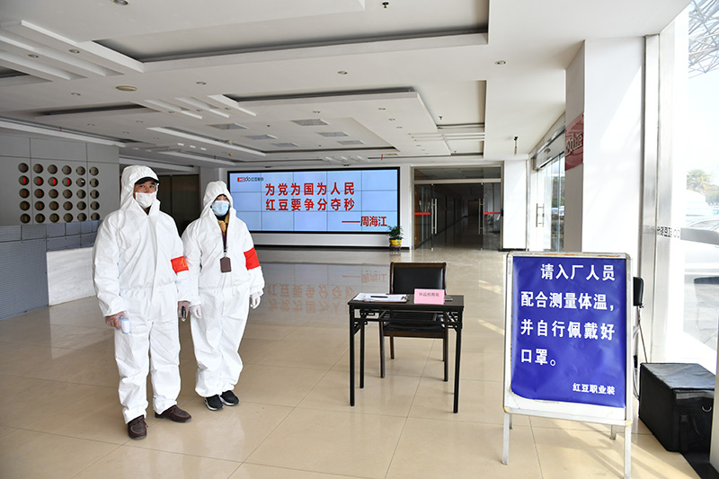 做好疫情防控,实现安全复工,红豆集团在职工未充分到岗的情况下实现了稳定生产。