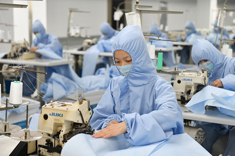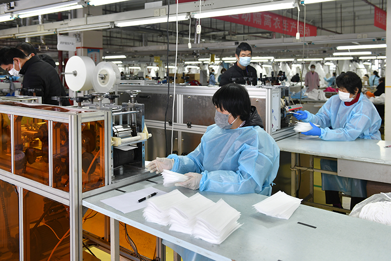 早在2月1日,为缓解疫情防控物资紧缺状况,红豆集团就将服装生产线转变为防疫工作需要的防护服生产线,开足马力生产。2月10日,在继续做好科学防控的同时,红豆集团各公司已安全有序复工生产。