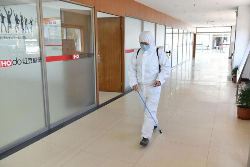 疫情期间,厂区的消毒任务是十分重要的。谢军每天都背着喷雾器,不少于三次对工厂的各个角落进行消毒。“每天背着这个,感觉自己像是在给花浇水的园丁。”谢军开玩笑的说。