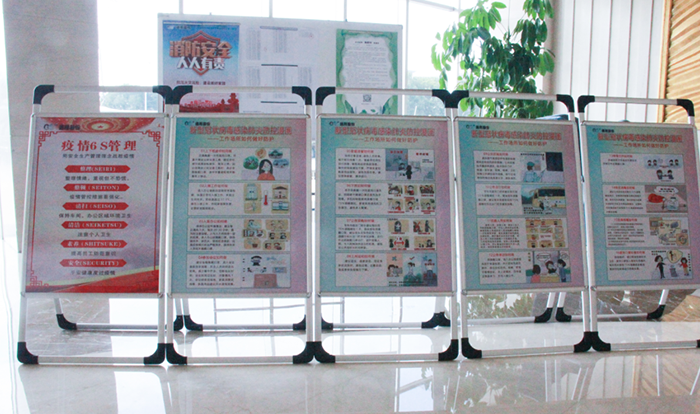 “疫情6S管理”,“戴口罩,就餐前请洗手”……从办公区域到工厂车间,类似的宣传画随处可见,同时公司开展全员线上培训,在潜移默化中提醒员工提升防控意识、提高自我防护能力。