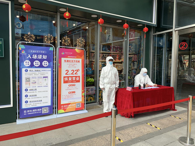 闭店期间,各项目积极做好防疫保障,储备防疫物资,在得知可申请回复营业后第一时间提交申请,经政府验收批准,2月22日东港红豆万花城成为锡山区首家恢复营业的购物中心,全力保障百姓的生产生活需求,与此同时,中山路红豆万花城、人民路红豆万花城、镇江红豆万花城等项目也逐步通过验收,恢复营业。