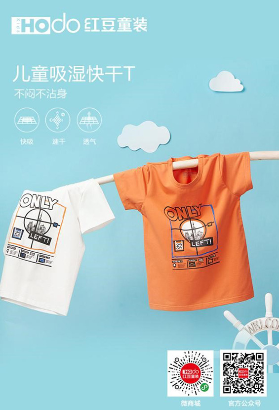 夏天就要到了,大家都知道小孩子好动易出汗,非常容易受凉,因此红豆童装推出了快干T 。此款T恤在保持舒适性的同时,又在原有的棉成分中加入coolpass吸湿排汗聚酯纤维,这种面料能在大量出汗的情况下,利用内部“十字”异形内凹槽水槽及毛吸原理将水分排出,达到速吸快干的效果。这样,孩子在出汗后,衣服都不会有粘贴皮肤产生的湿冷感。这是一款非常适合孩子夏季穿着的单品。成立于1994年的红豆童装坚持以“健康舒适”为产品理念,致力于打造出适合中国儿童的国民童装。