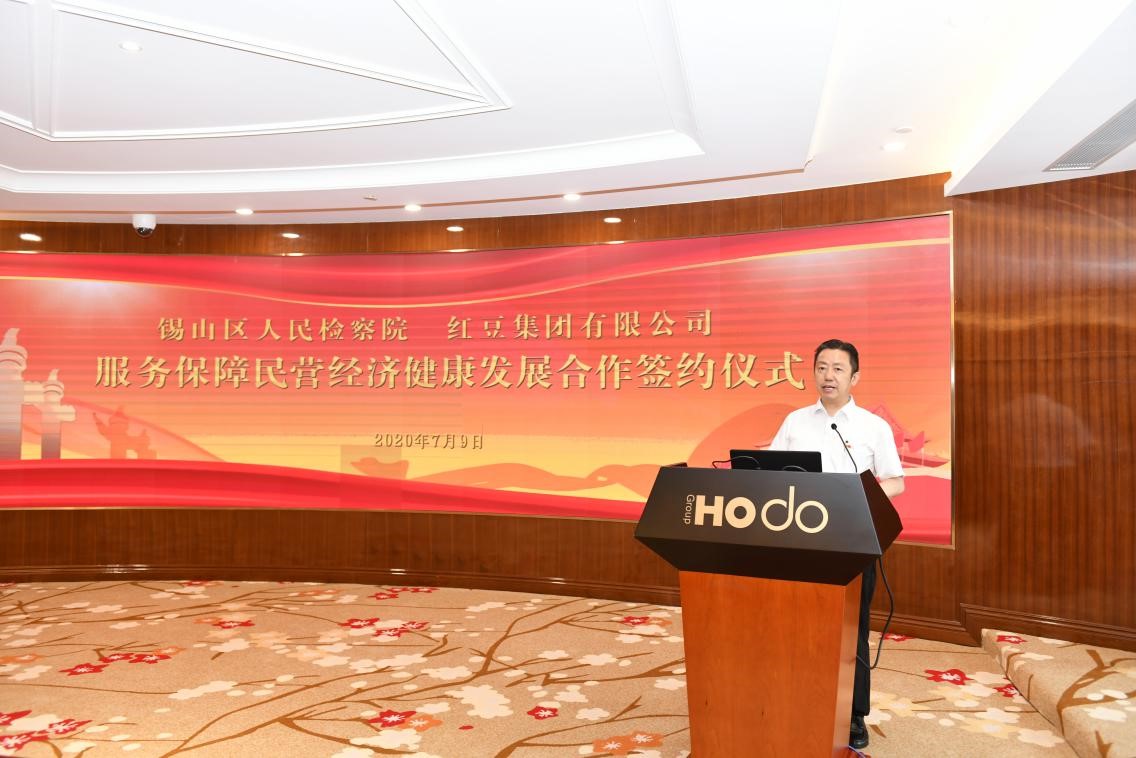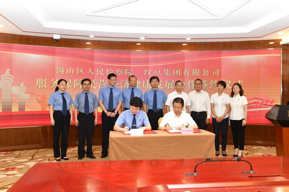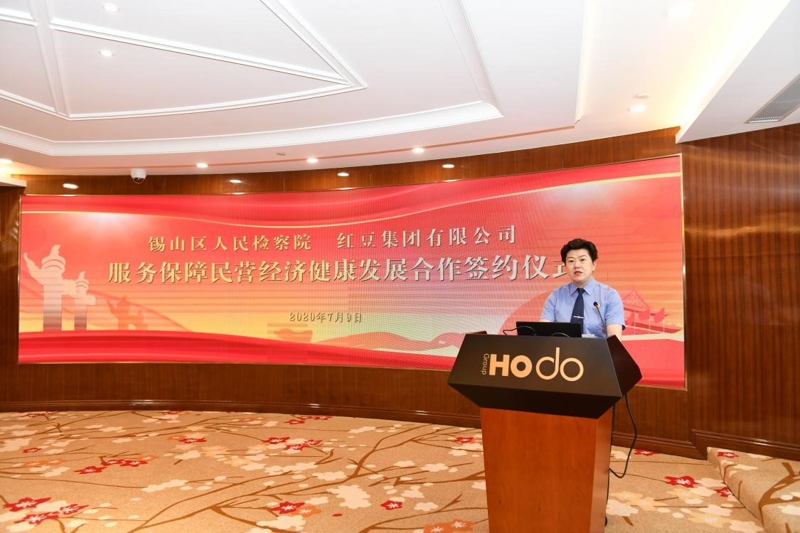 为深入贯彻习近平总书记在民营企业座谈会上的重要讲话精神,落实中央、省市委关于大力支持民营经济发展部署要求,充分发挥检察机关职能,为民营经济提供优质的法律服务和坚定的司法保障,7月9日,红豆集团与锡山区人民检察院在红豆财富广场北京厅进行服务保障民营企业健康发展合作备忘录签约。仪式上,红豆集团党委书记、董事局主席兼CEO周海江和锡山区人民检察院何莹检察长代表双方签署合约。