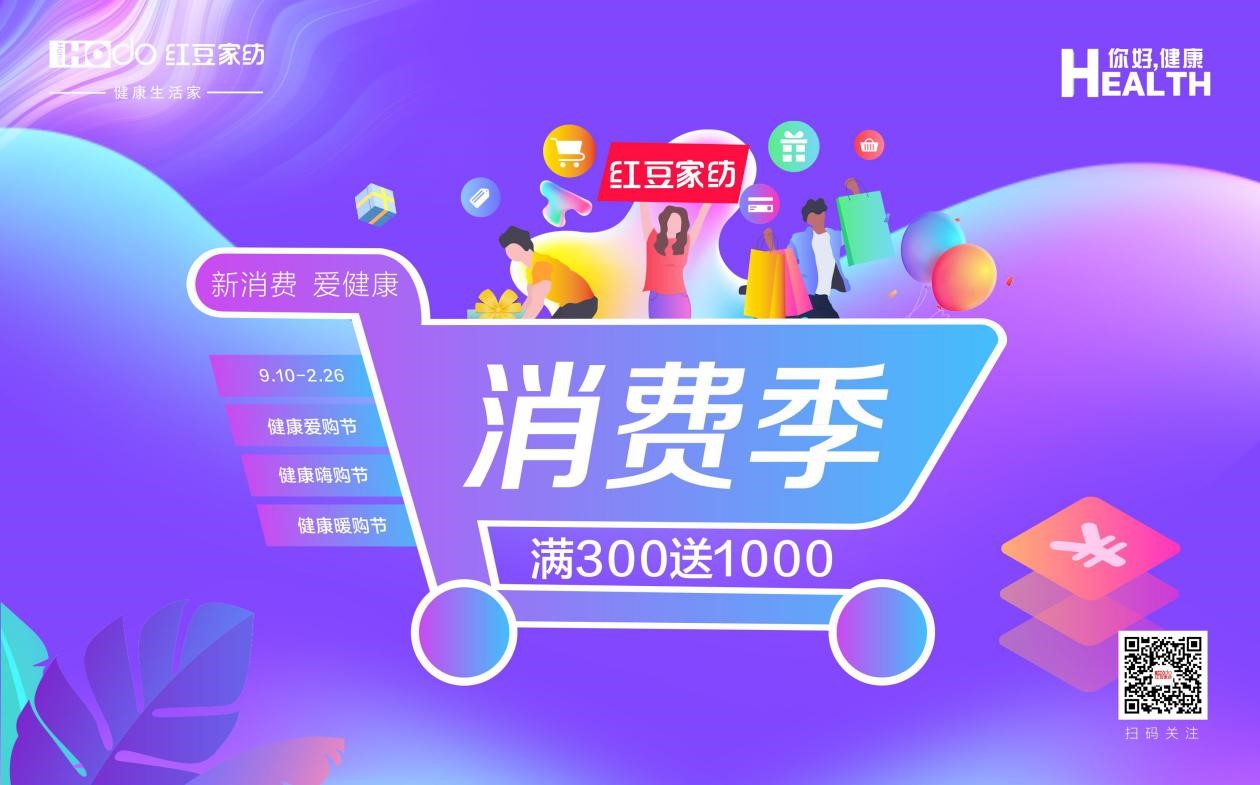 金秋如锦,今年适逢国庆、中秋“双节合一”。在“双节”到来之际,红豆家纺为进一步激活大众健康睡眠消费潜力,于2020年9月10日举办 “新消费.爱健康——红豆家纺消费季”主题系列活动,让用户在“红豆家纺消费季”多买多送,一次买个够,活动期间推出满300元送1000元券包,以前端企业让利,后端链接用户,为用户提供有价值的消费福利,持续为用户输出健康睡眠品牌理念。