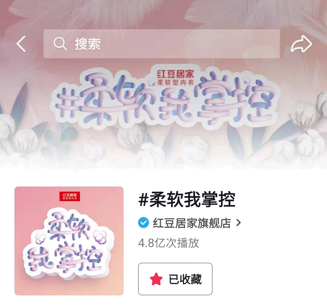 本次挑战赛是红豆居家品牌布局短视频领域的初步尝试,在挑战赛的细节设计中处处体现了品牌对于“柔软”的重视。倡导用户感受内衣柔软才舒服,用户可以通过掌控棉花感受柔软,触发获得三款柔软贴纸,上线3天累计播放量已超4.8亿次,借此提升了品牌的亲和力,拉近了产品与消费者的距离。本次活动截止日为11月16日,屏幕前感兴趣的你,可以通过抖音搜索话题#柔软我掌控 参加此次抖音挑战赛活动,一起与红粉们感受柔软的魅力。
