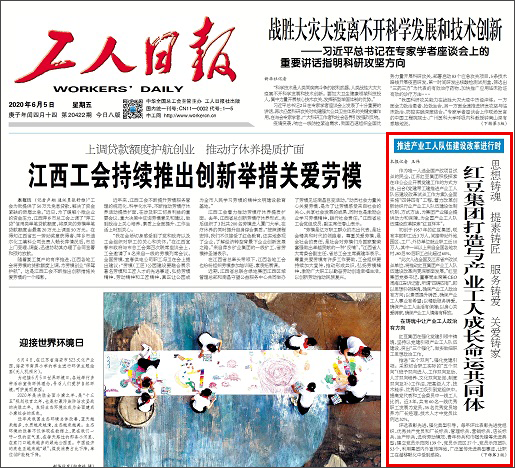 作为唯一入选全国产改项目试点的民企,江苏红豆集团积极探索在非公企业开展党建工作的方式方法,出台《党建带工建推进产业工人队伍建设改革试点工作方案》,全面实施“四铸四有”工程,着力改革创新纺织行业产业工人队伍建设体制机制、方式方法,为集团产业强企提供动力和保障,为全国产业工人队伍建设改革探索“红豆样本”。