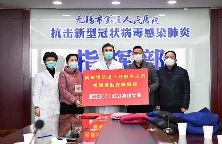 集团旗下红豆股份党委向疫情防控一线医务人员捐赠一批后勤保障服装,包括200套羽绒服和500套内衣。