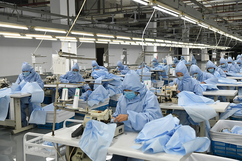 克服一系列困难后,终于在2月3日17点15分,第一件一般防护服顺利下线。“我们筹备了5个小组,目前每天产量1500件左右,一周后可以达到每天7000件。”顾金龙说,现在企业火力开足,确保最大生产量,助力打赢疫情防控攻坚战。
