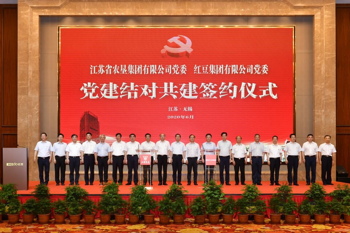 据悉,此次签约后,双方将以党建为纽带,按照“资源共享、优势互补、互利共赢”的基本原则,在组织共建、人才共育、资源共享、文化共育、发展共促方面,开展党建结对共建,从而实现党的建设和企业发展同频共振、互促共赢。包括充分利用各自党建资源,定期共同开展党建活动,实现党建与业务深度合作良性互动;扎实推进党员队伍建设,共同谋划、联合举办党员骨干培训班;利用各自资源优势,加强党的建设、市场信息、技术研发等方面的合作交流,推动党建工作和业务融合发展、共同进步;通过红豆七夕节、重要节日双方联合开展各类文化活动,不断增强党组织的凝聚力和战斗力;以党建引领发展,充分发挥双方资源优势,积极推进生物医药、房地产、绿色生态优质农产品销售、无锡锡商银行金融服务等,实现互利共赢。